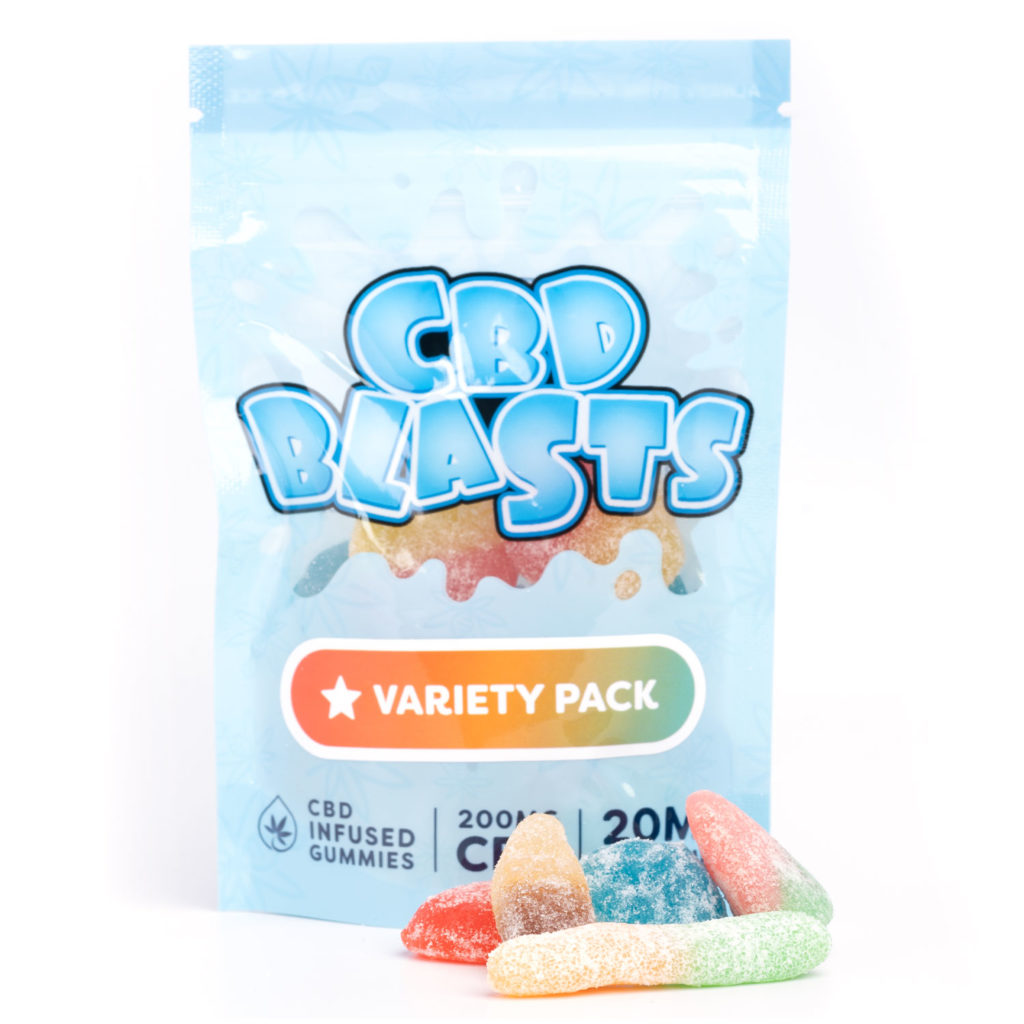 Each package contains 10 gummies with 20mg of CBD per piece. CBD Blasts are available in timeless candy store classics such as Cola, Gummy Worms, Sour Peaches, Sour Keys, Blueberry, Watermelon, Gummy Bears and more!